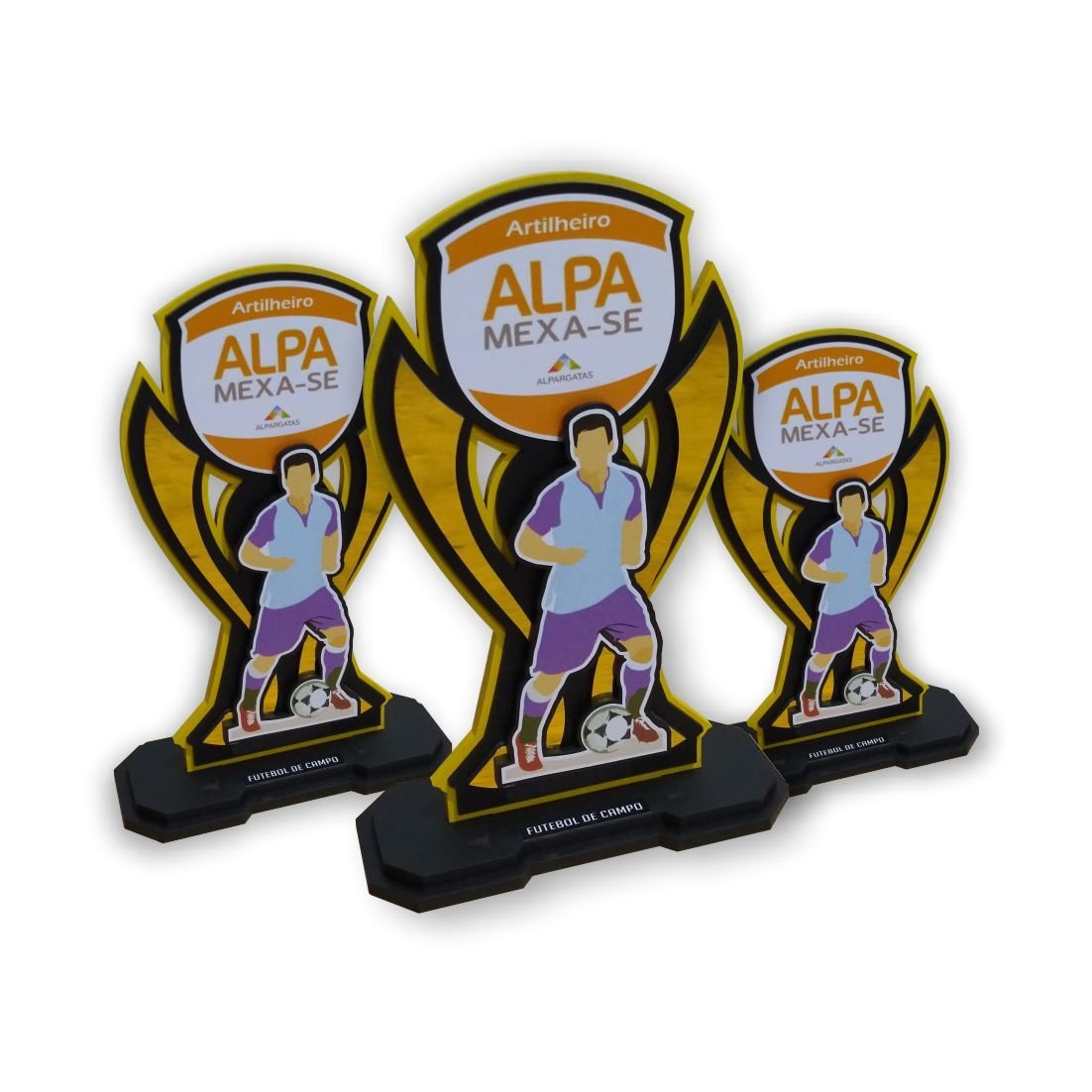 - Troféu produzido com cortes computadorizados, garantindo precisão e um excelente acabamento final do produto