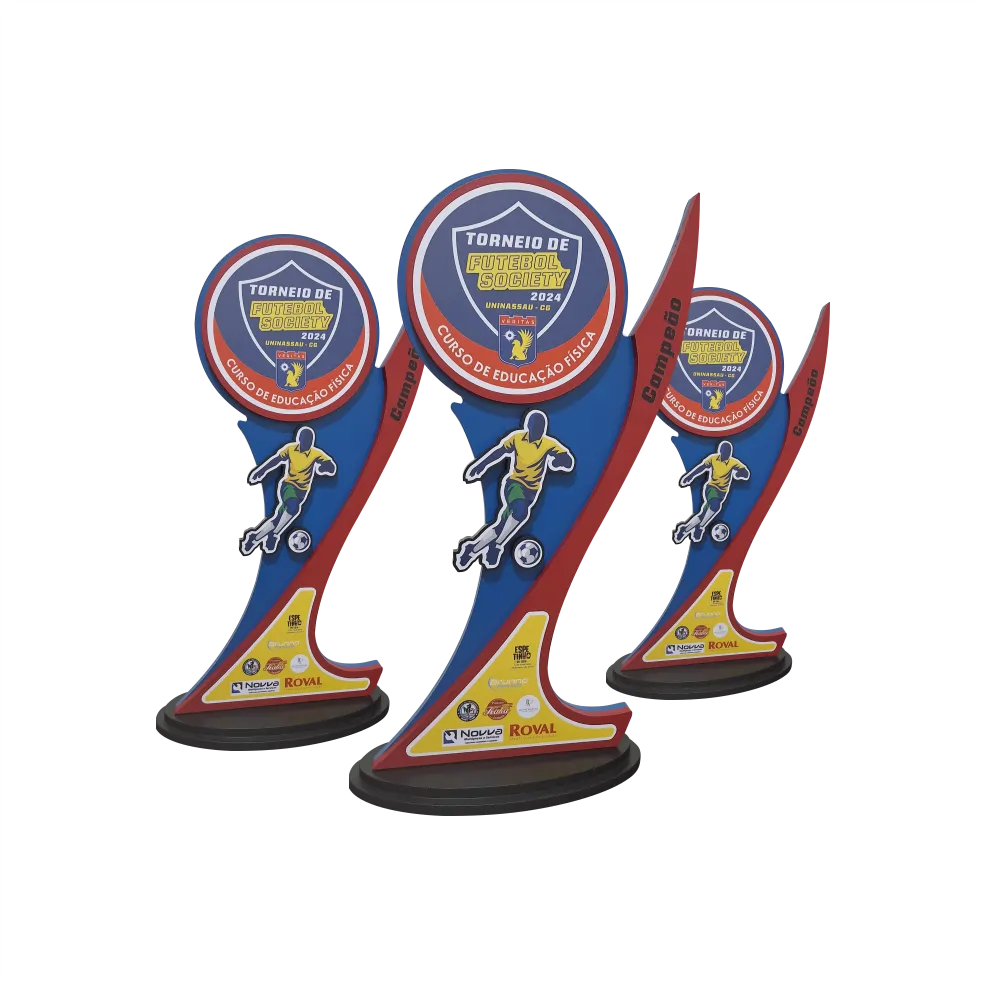• Troféu produzido com cortes computadorizados, garantindo precisão e um excelente acabamento final do produto