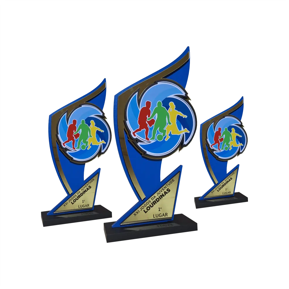 - Troféu produzido com cortes computadorizados, garantindo precisão e um excelente acabamento final do produto