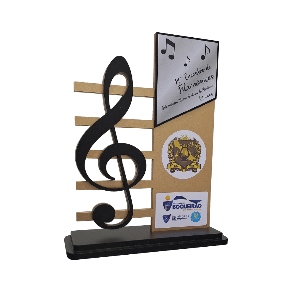 Troféu personalizável para encontro de bandas, com excelente acabamento.