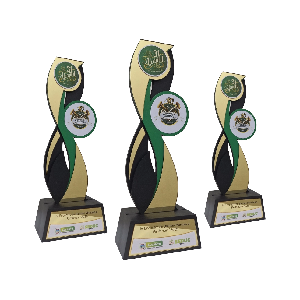 • Troféu produzido com cortes computadorizados, garantindo precisão e um excelente acabamento final do produto