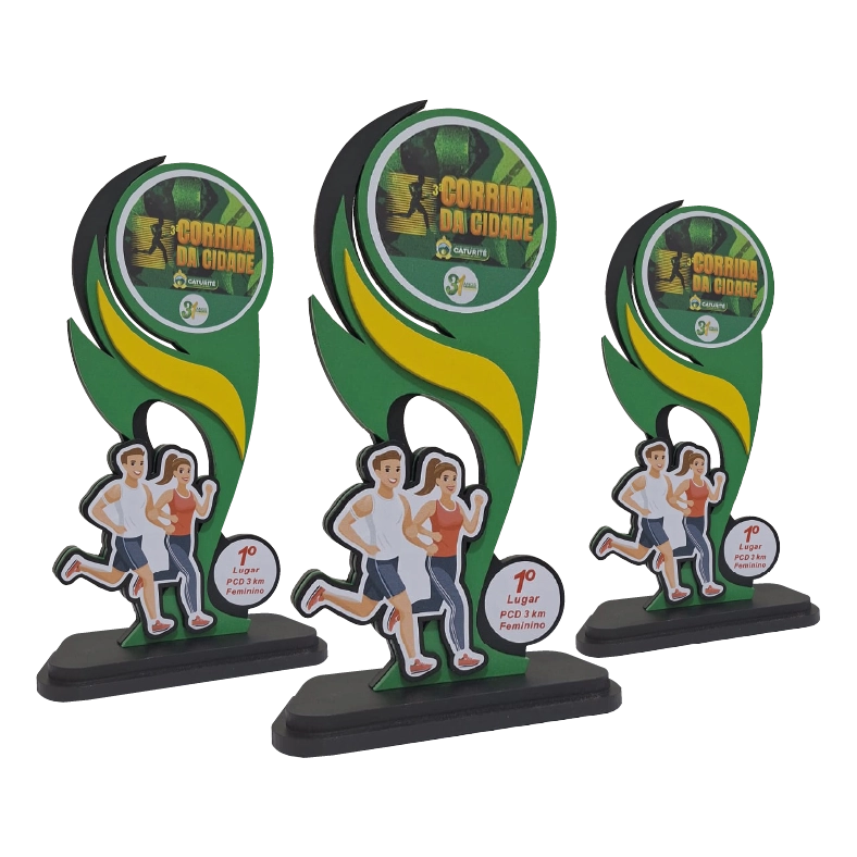 - Troféu produzido com cortes computadorizados, garantindo precisão e um excelente acabamento final do produto