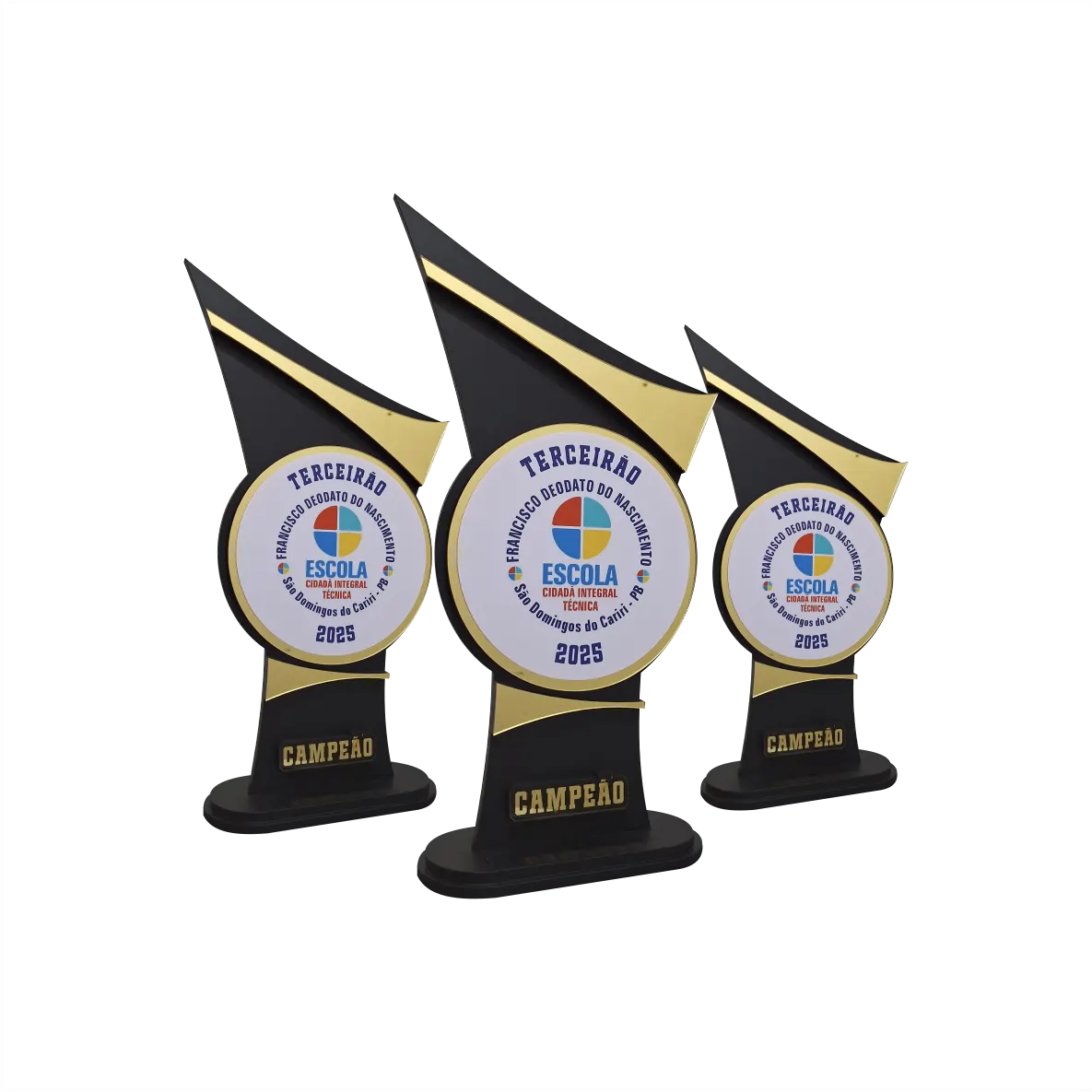 - Troféu produzido com cortes computadorizados, garantindo precisão e um excelente acabamento final do produto