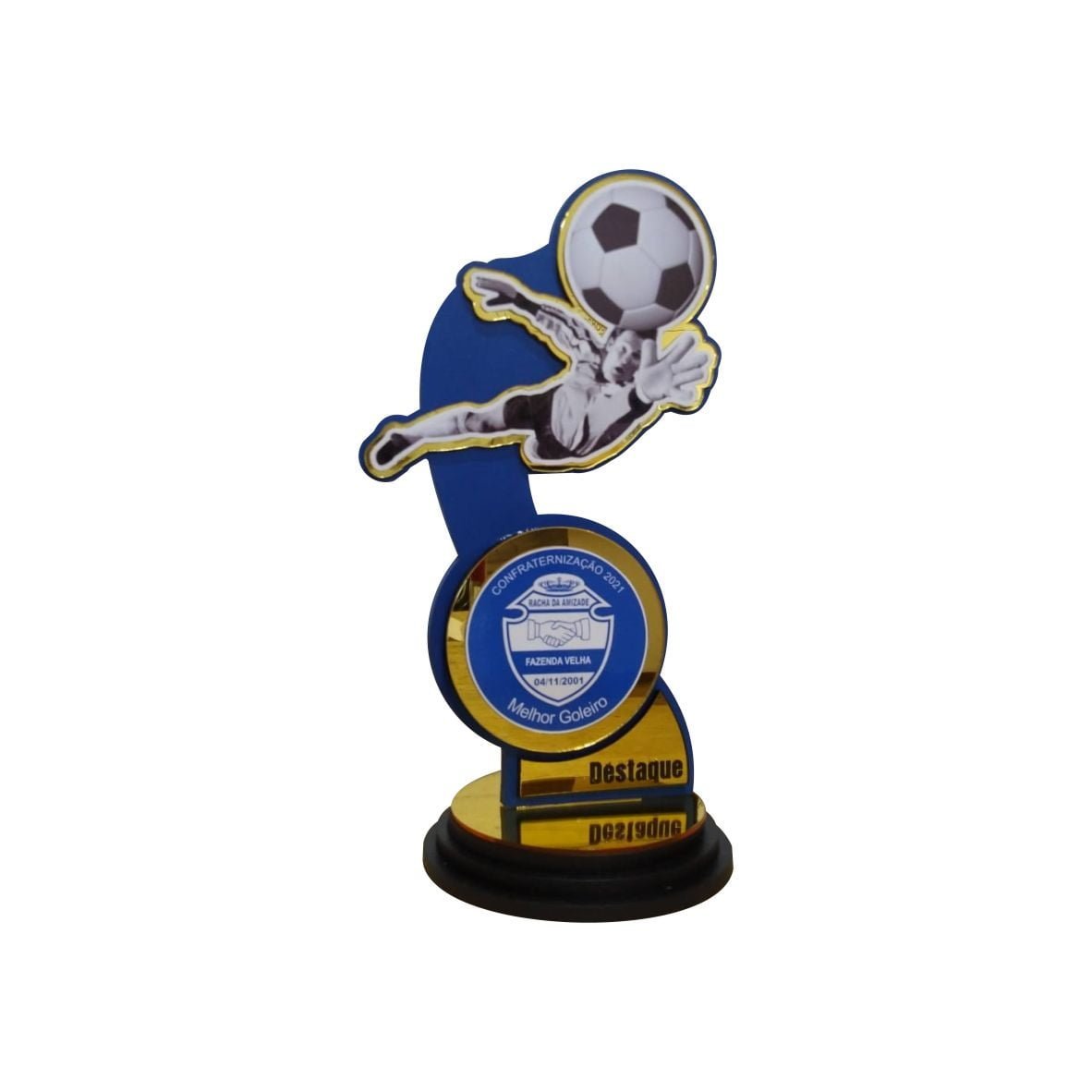 Troféu personalizável para melhor goleiro, com excelente acabamento.
